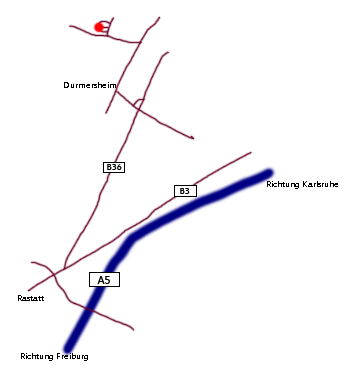 Kreuzung Hauptstrasse. Rechts abbiegen Richtung Ettlingen